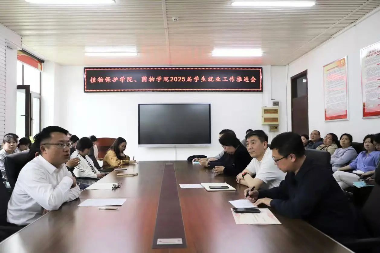 为实现2025届毕业生高质量就业,5月13日,植物保护学院、菌物学院召开2025年学生就业工作推进会。学院领导班子成员及学院全体教师参会,会议由学院党委书记叶长江主持。