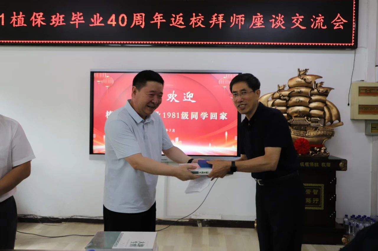 7月31日,学校迎来了一批特殊的“客人”——植物保护专业81级毕业40周年的校友们。他们从祖国各地重返母校,参加拜师座谈交流会,与昔日恩师和同窗欢聚一堂,共同回顾青春岁月,畅谈人生感悟,共商学院未来发展。校长李启云,退休教师代表伊伯仁、杨信东、高书砚、李亚,校友服务中心主任程军、图书馆馆长武志海、农学院党委书记苑淑玲及学院党委书记叶长江、院长袁海滨等出席本次活动。