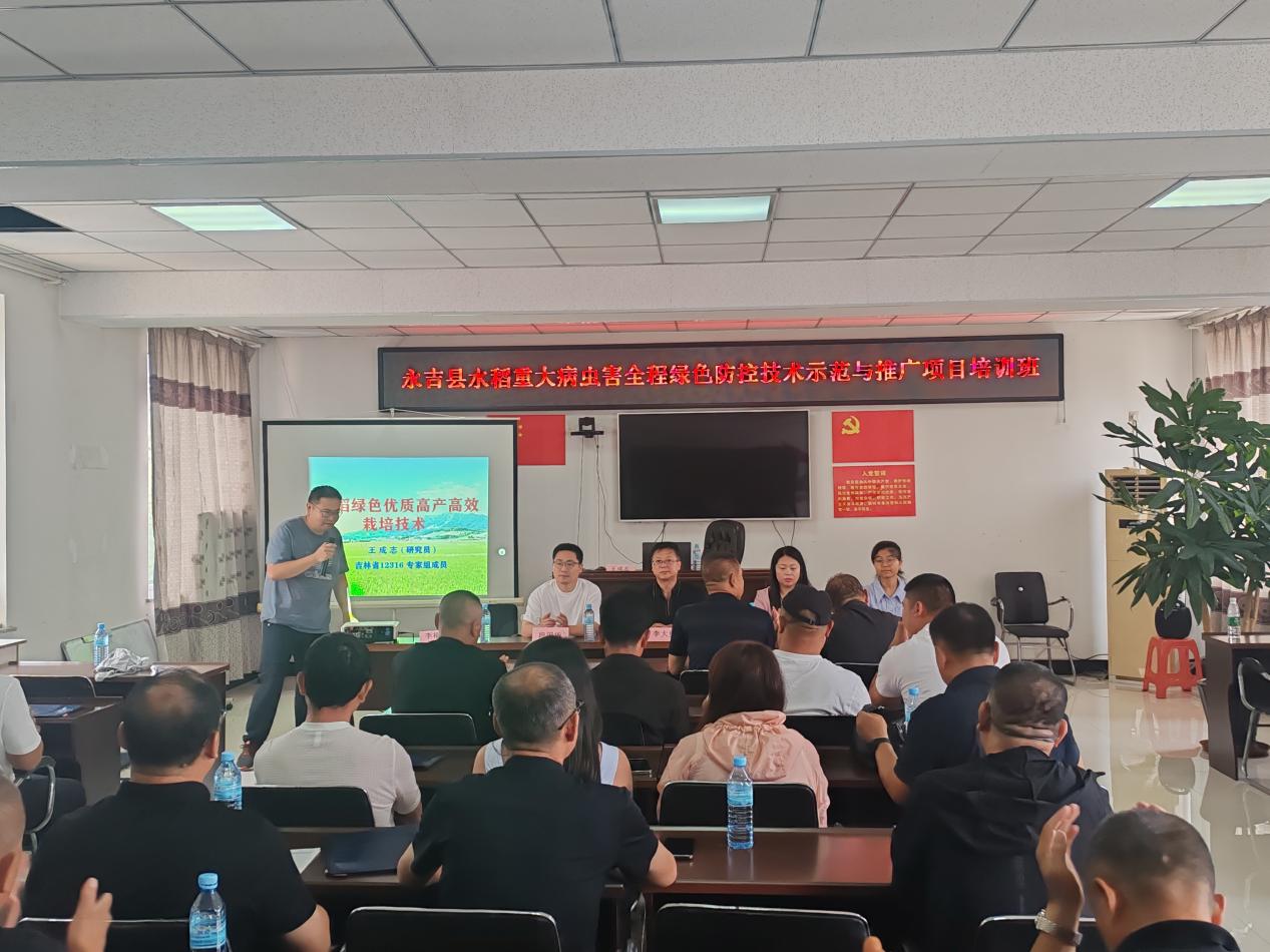 8月25日至27日,由吉林省农业技术推广总站和吉林农业大学联合组织的“水稻重大病虫害全程绿色防控技术示范与推广项目培训班”在永吉县顺利举行。培训分批次面向全县农技推广人员、示范主体和种植大户开展,旨在加快水稻绿色防控技术推广应用,助力农业绿色转型和高质量发展。吉林省农业推广总站陈立玲高级农艺师、高晋丽助理农艺师,以及吉林农业大学植物保护学院、菌物学院李大勇教授、段国华副教授参加本次培训会。