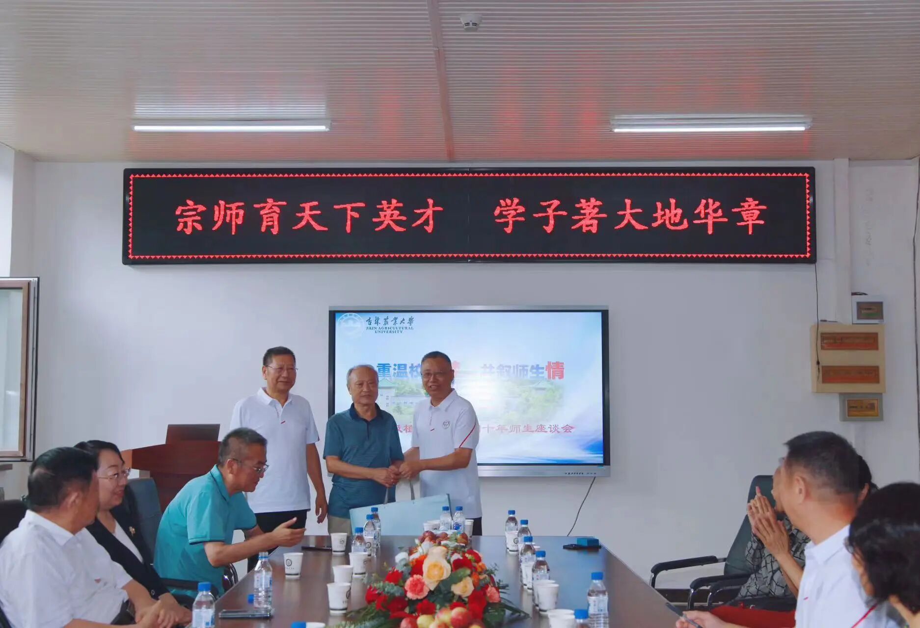 校友办主任程军对校友们载誉归来表示欢迎,并向校友们赠送学校纪念校徽;植物保护学院、菌物学院院长袁海滨向校友们介绍了学院建设发展情况,师生们共同观看了植物保护学科建设发展宣传片。校友代表向老教师赠送礼物。