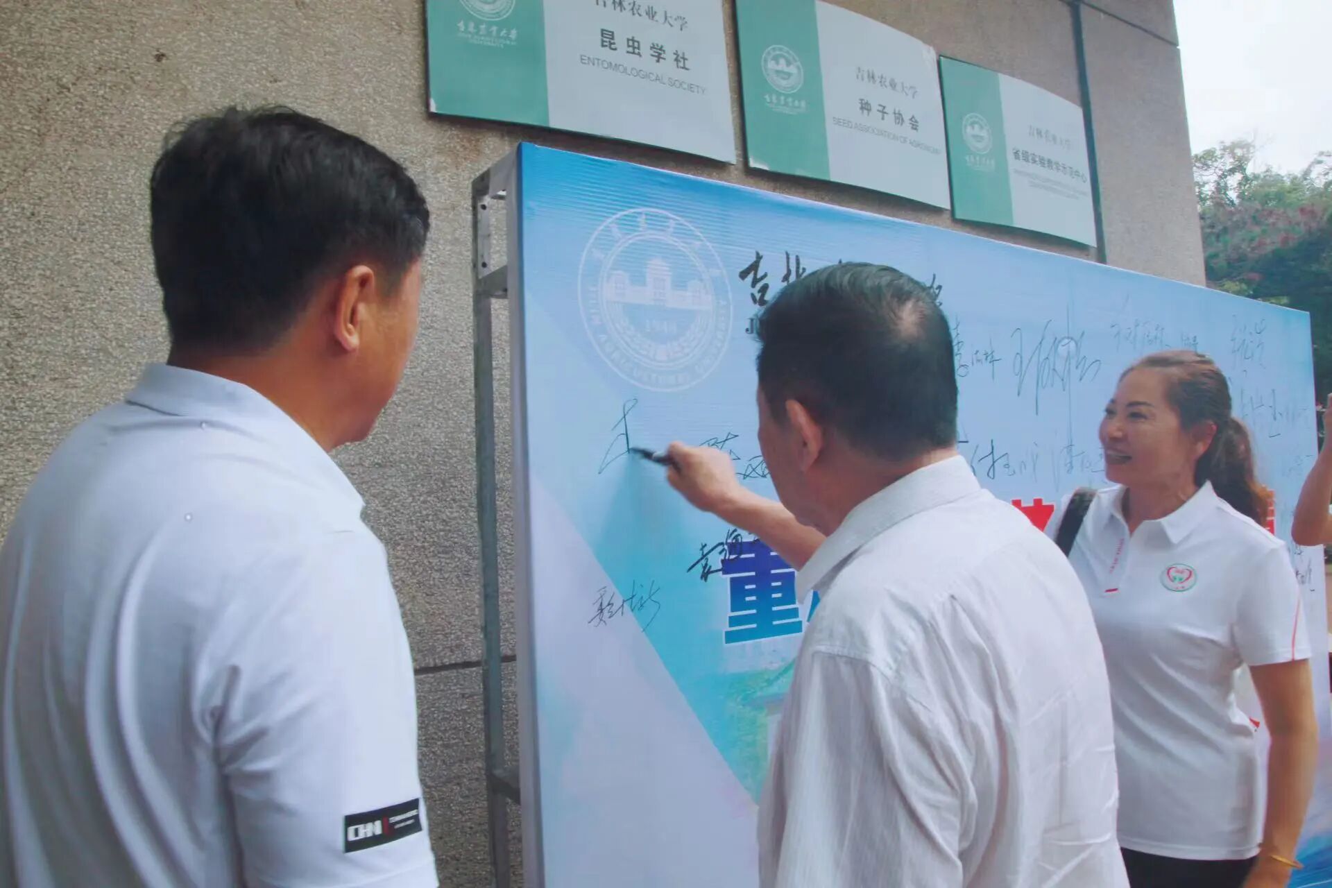 师生代表们在签名墙上签字,表达对母校的深切祝福。