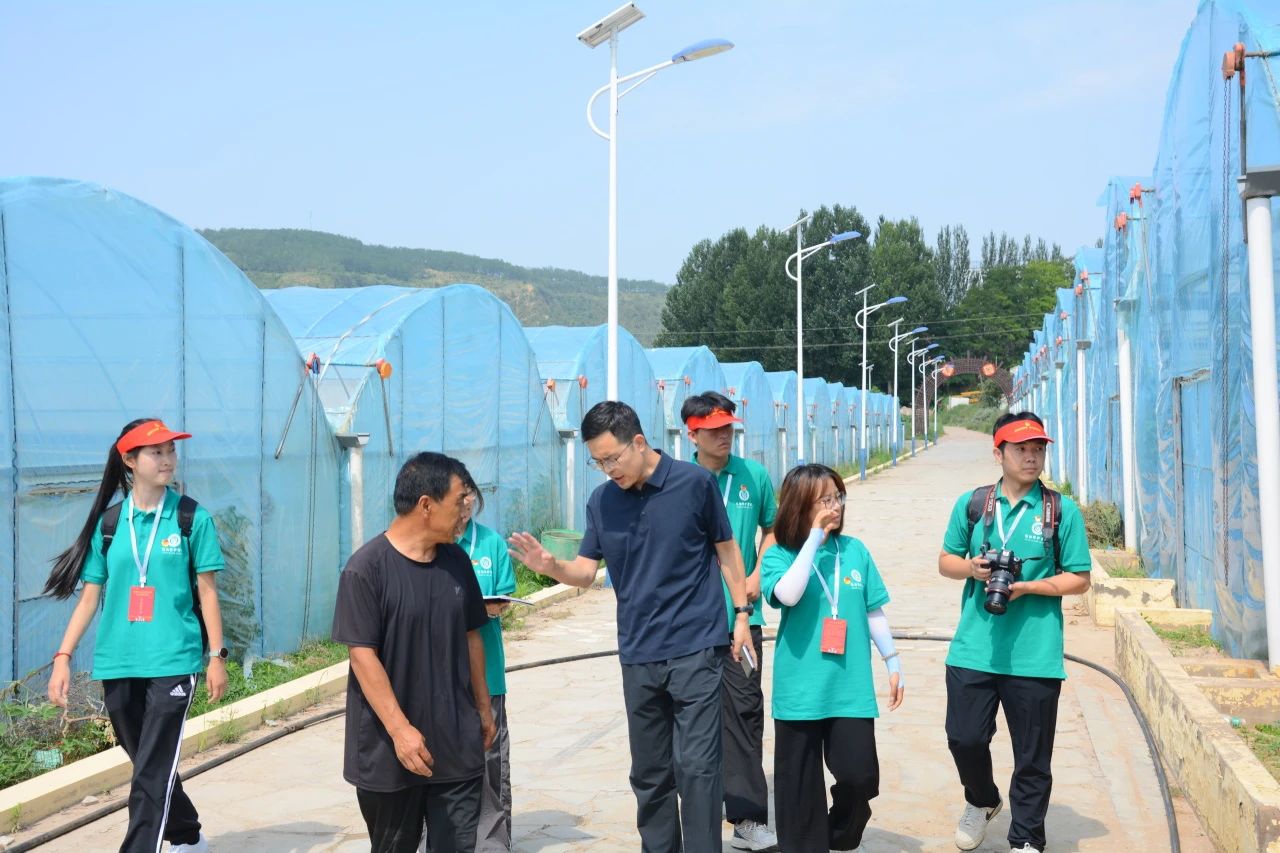 当日下午,在张书记的亲自带领下,实践团成员来到了闫家沟村颇具规模的现代化种植大棚基地。张书记细致地为实践团讲解了闫家沟村的农业发展历程:最初是由少数具有前瞻性眼光的农户率先尝试种植葡萄、甜瓜等夏季畅销水果,在取得初步成功后,逐步带动全村走上规模化、产业化的发展道路,同时得到了当地政府的大力支持,不仅提供专业的技术指导,还配套完善了基础设施。这种“政府引导+科技支撑+农户参与”的发展模式,成为当地实施乡村振兴战略的一个鲜活样板。最后,团队成员为张书记详细介绍了木耳产业的发展,表示木耳种植也可以作为提升村民收入的有效途径,张书记对此很感兴趣,并期望后续能够与我们达成合作,学校提供菌包和技术支持,闫家沟村提供实践基地。通过此次深入田间地头的实地考察,实践团成员真切感受到了“绿水青山就是金山银山”这一绿色发展理念的重要性。