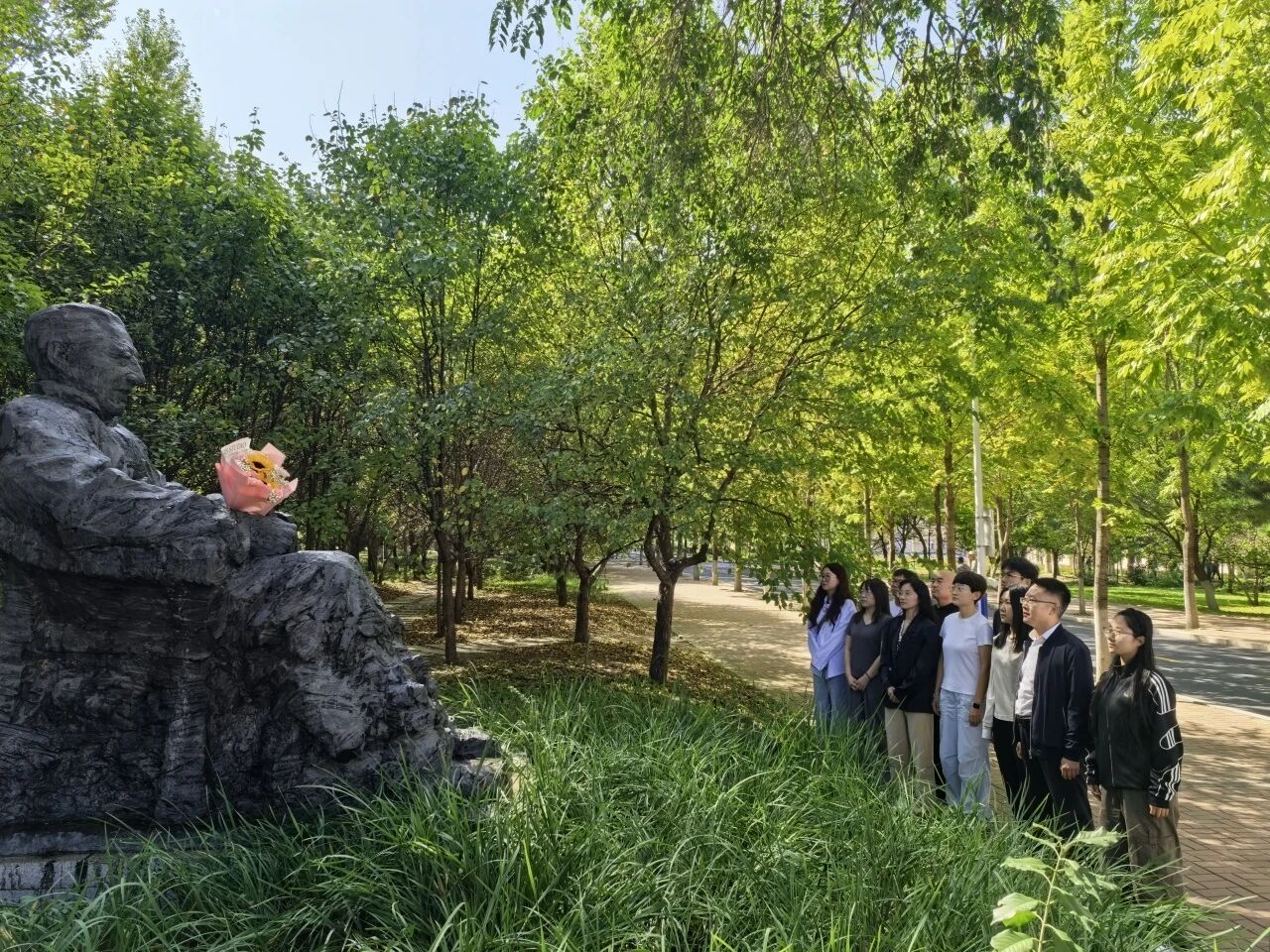 手捧鲜花,心怀敬意,郑重递至老师面前。花瓣舒展、芬芳弥散,每一片花瓣都承载着对教育事业默默付出者的最高礼赞。让花香盈怀袖,让爱与尊重随着花香伴着老师们的教学生根发芽。